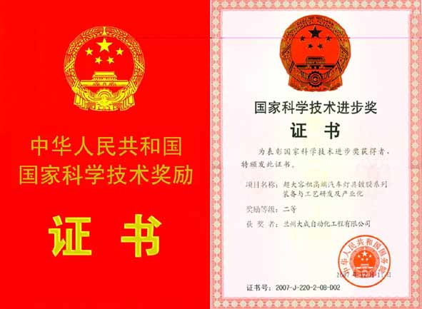 ZDL系列汽车灯具真空镀膜装备是当今中高档汽车车灯生产的关键技术装备,2006年被评为甘肃省十五期间十大科技成果,2007年该系列设备被科技部、商务部、国家质量监督总局、国家环保总局评为国家重点新产品。目前共推广108套装备,在国内车灯行业的高中档市场占有略达65.9%。2007获得国家科学技术进步二等奖。