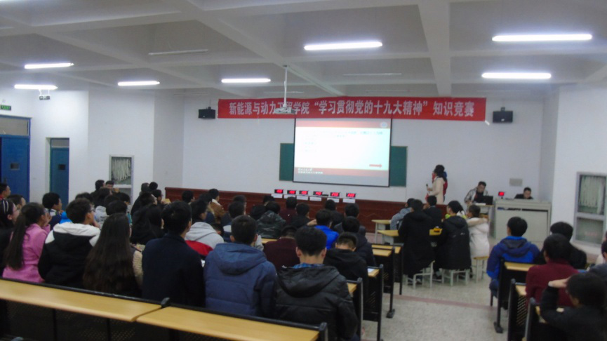 为深入学习宣传贯彻党的十九大精神,把学生党员的思想统一到党的十九大精神上来,把力量凝聚到党的十九大确定的各项任务上来,近期新能源与动力工程学院党委组织开展了“学习贯彻党的十九大精神”知识竞赛。学院所有学生党员及本期发展对象参加了本次活动。