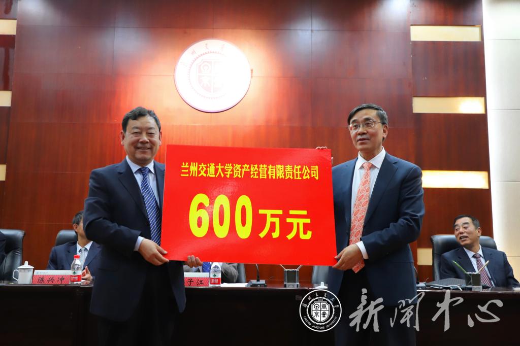 会上还举行了捐赠仪式。李引珍校长代表学校接受了兰州交大资产经营有限责任公司法人代表、总经理于清高代表公司向学校的捐资600万元,用于学校事业发展。