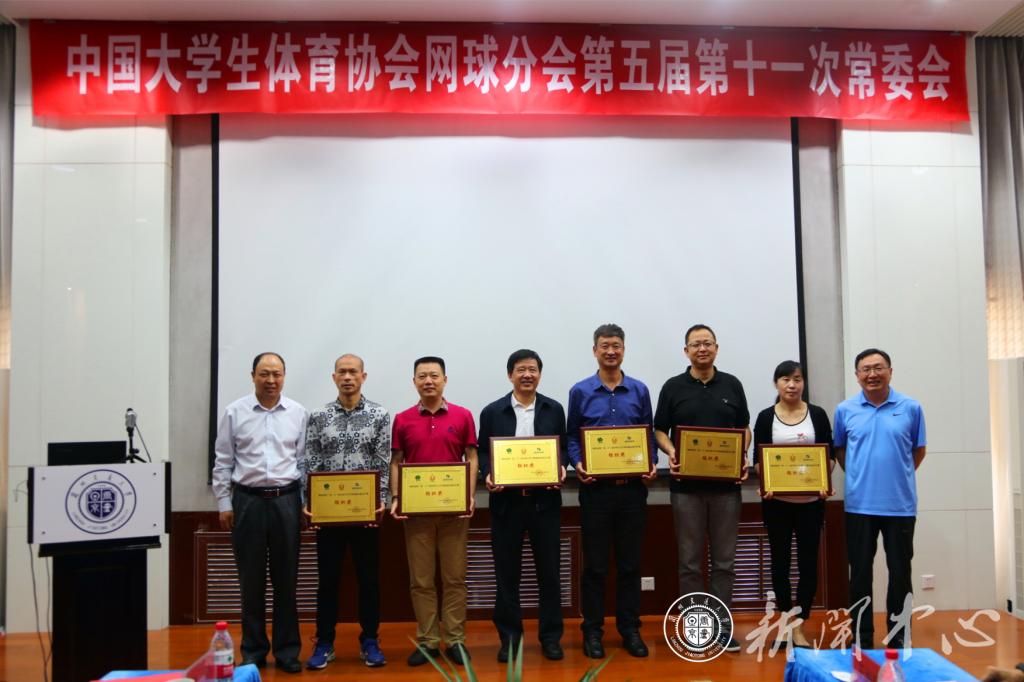 中国大学生体育协会网球分会其他委员分别作了会议交流发言。并颁发了2018年中国大学生网球锦标赛分区赛组织奖。